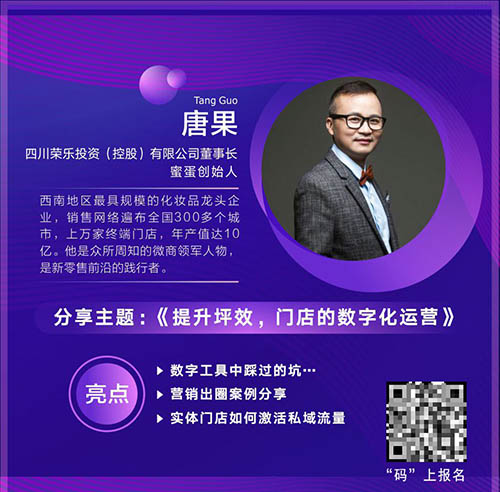 實(shí)體門店沒有工具也能維系,但數(shù)字化創(chuàng)新工具一定是為門店錦上添花。本屆峰會(huì)唐總也會(huì)不吝分享他的經(jīng)驗(yàn),如何激活上萬(wàn)家終端門店的私域流量。